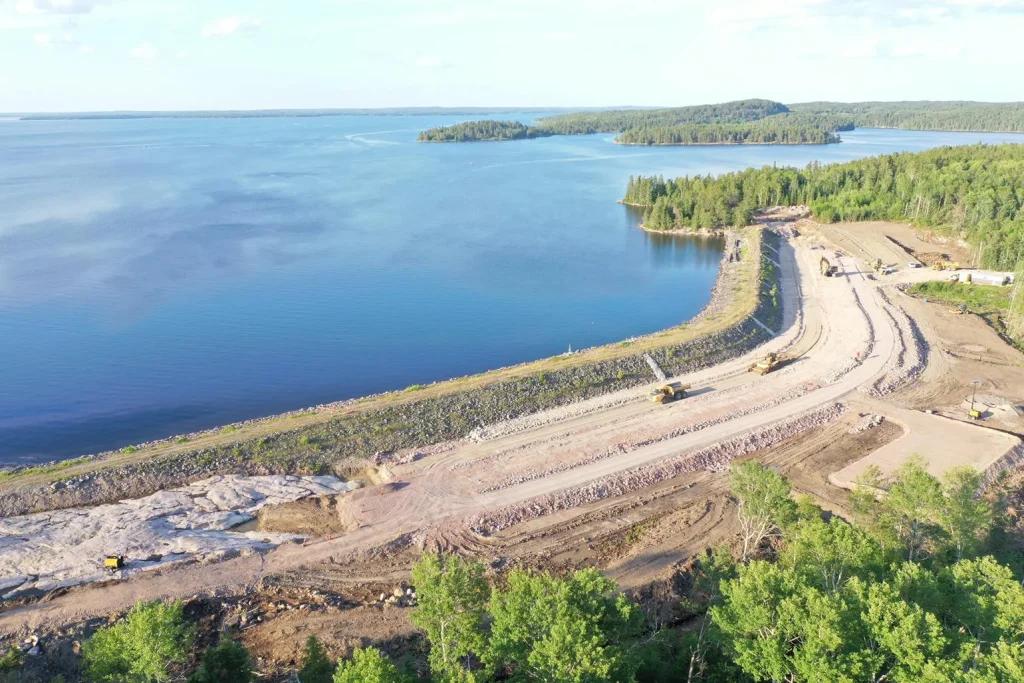 Ontario Power Generation retained KGS Group to design and supervise the reconstruction of the Caribou Falls Generating Station Block Dam 2 which sustained unexpected slope movements after 60 years of operation. Advanced techniques, innovative materials and sound engineering judgement were applied to design and construct a new earthfill dam. The design integrated constructability, risk mitigation and schedule saving strategies at the planning level. The dam and generation capacity were restored within budget and schedule, while preserving the pristine natural surroundings.